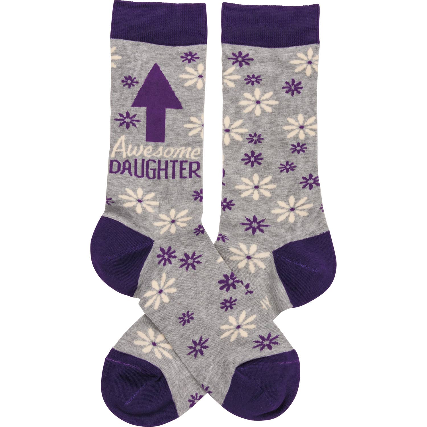 These colorful socks from our LOL Made You Smile Collection feature woven designs with coordinating "Awesome Daughter" sentiment. Cotton, nylon, spandex. These awesome daughter socks are one size fits most.
