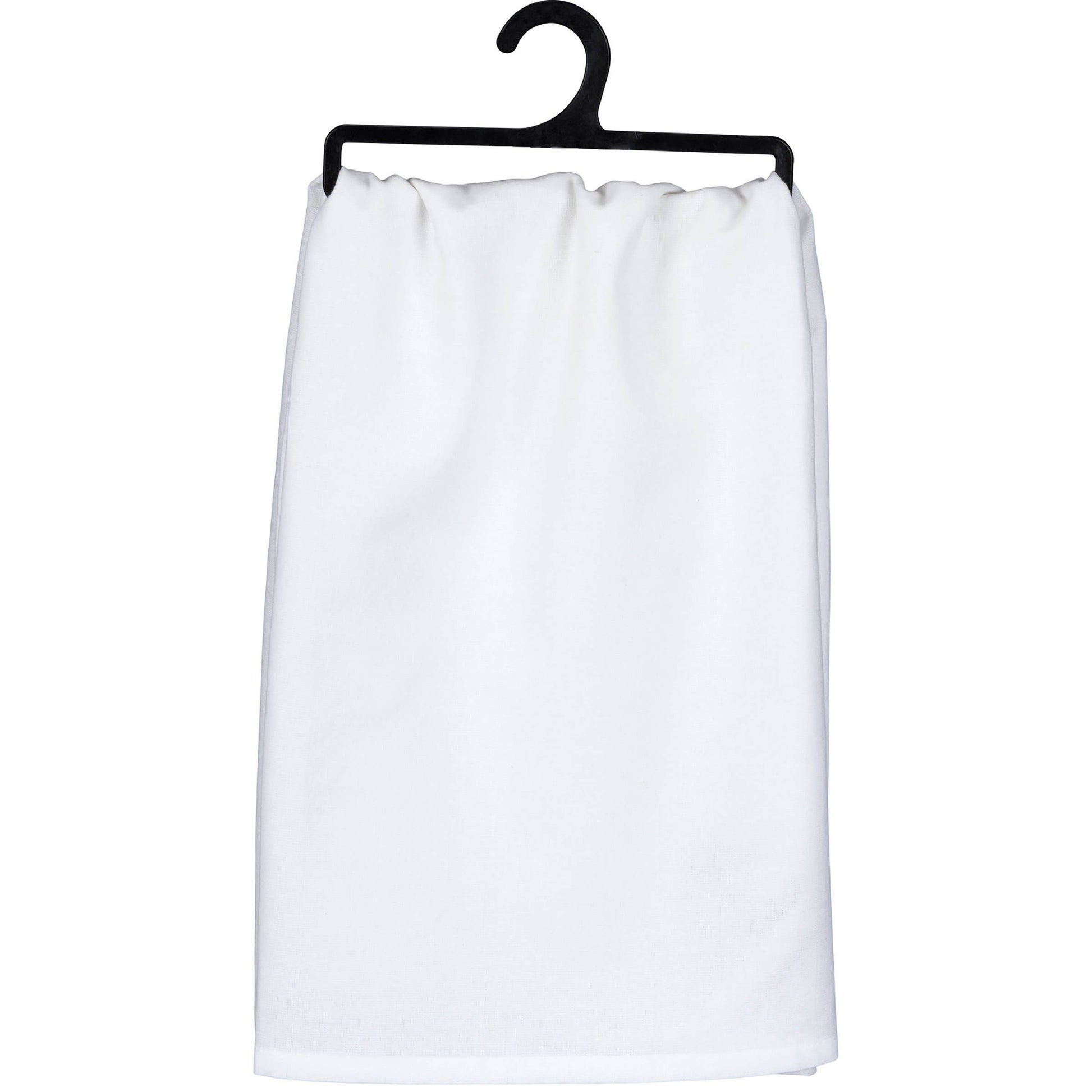 A black and white cotton kitchen towel from our Foodie Collection displaying a unique hand illustrated design of a counter of baking ingredients and tools above a fun food-themed sentiment that reads "Procrastibaking The Art Of Putting Off Responsibilities By Baking Instead." Our Baking Instead kitchen towel is machine-washable for convenient cleaning. Packaged on a black plastic hanger to easily display on rack. A fun food-themed kitchen accent perfect for everyday use.