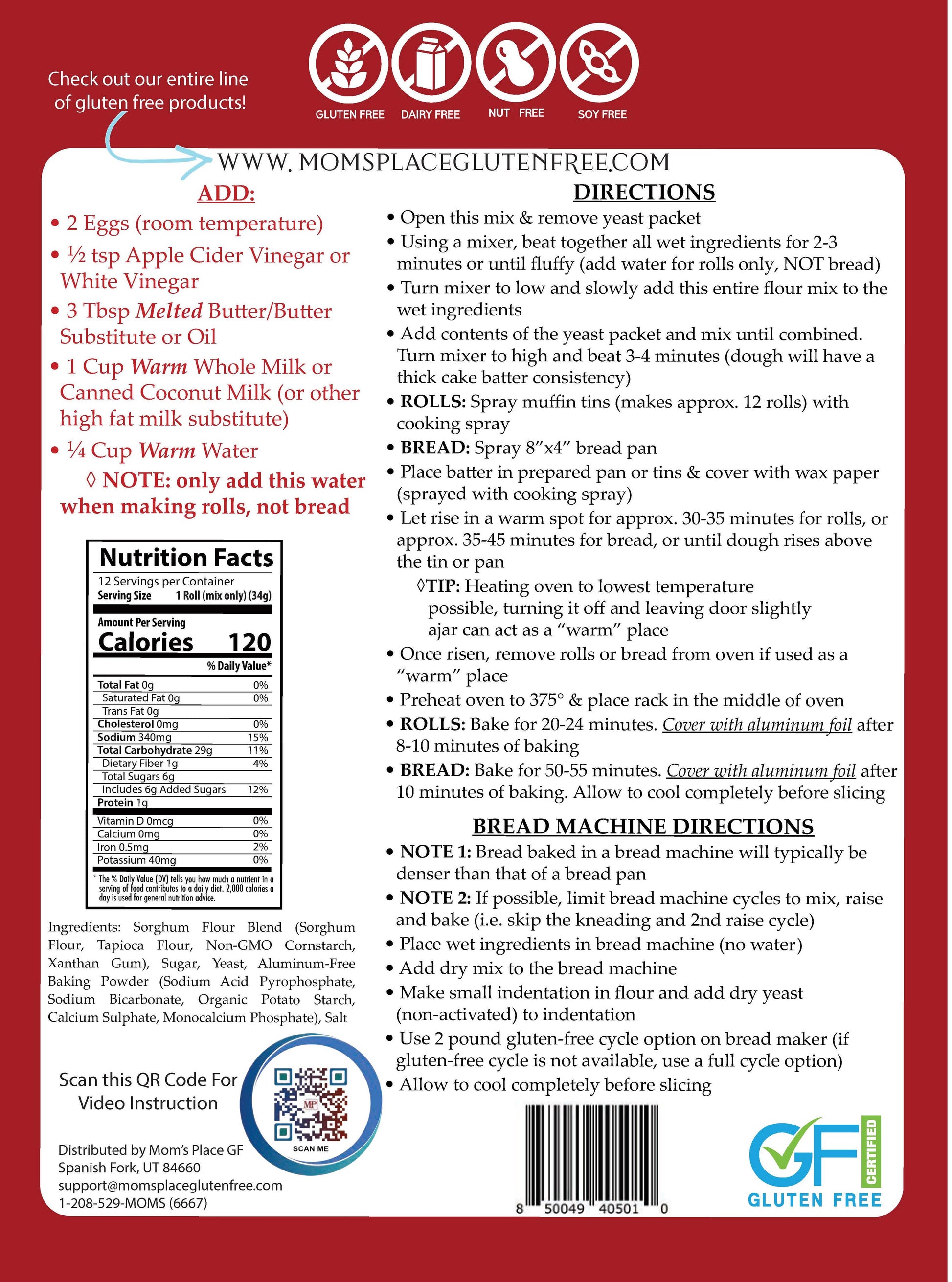 * GREAT TASTING: Try Mom’s Place "I Can't Believe These Aren't Wheat" Rolls or Bread fresh, warm and straight from the oven and enjoy delicious gluten-free rolls or bread without the worry of allergens.