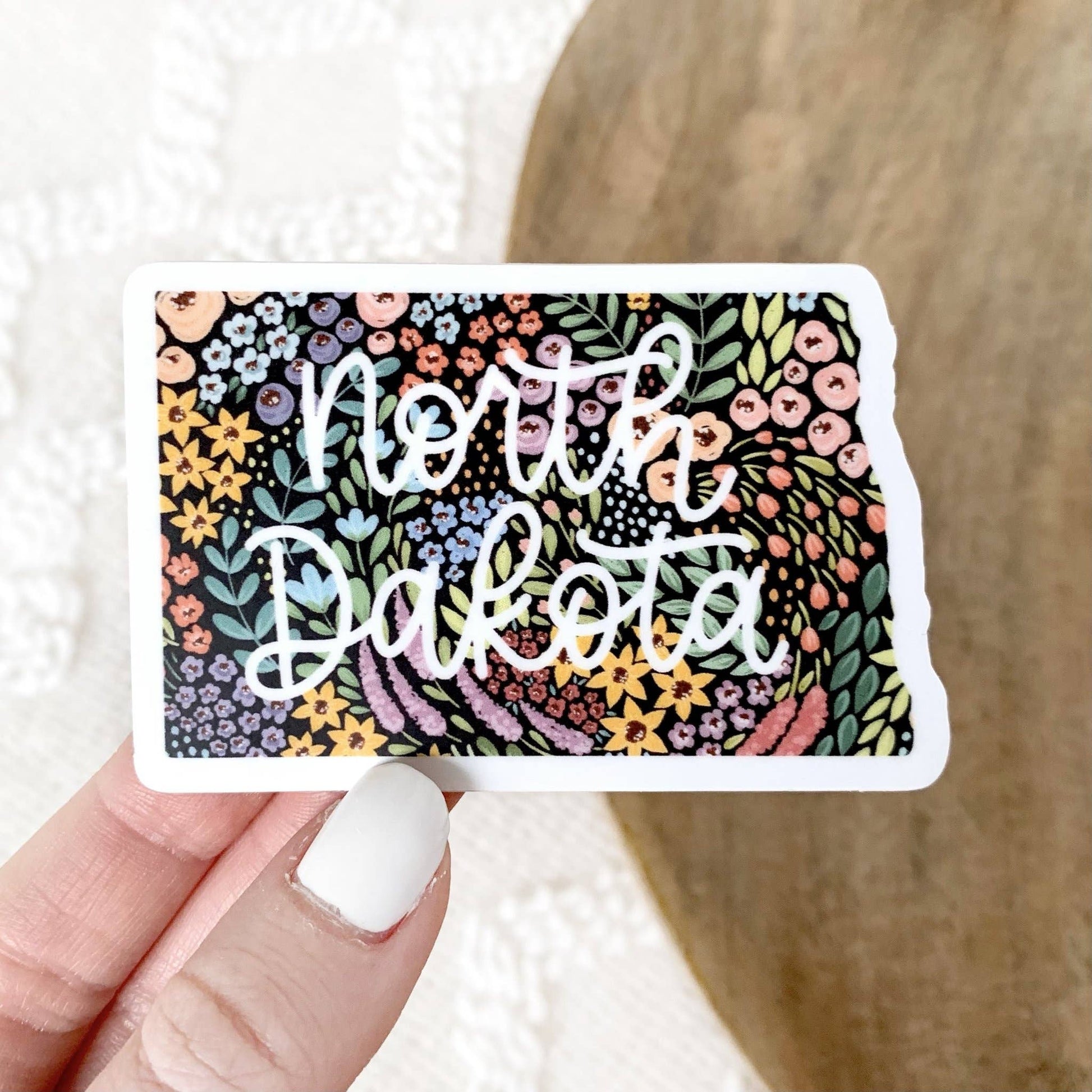 North Dakota Floral State Sticker, 3x2in.