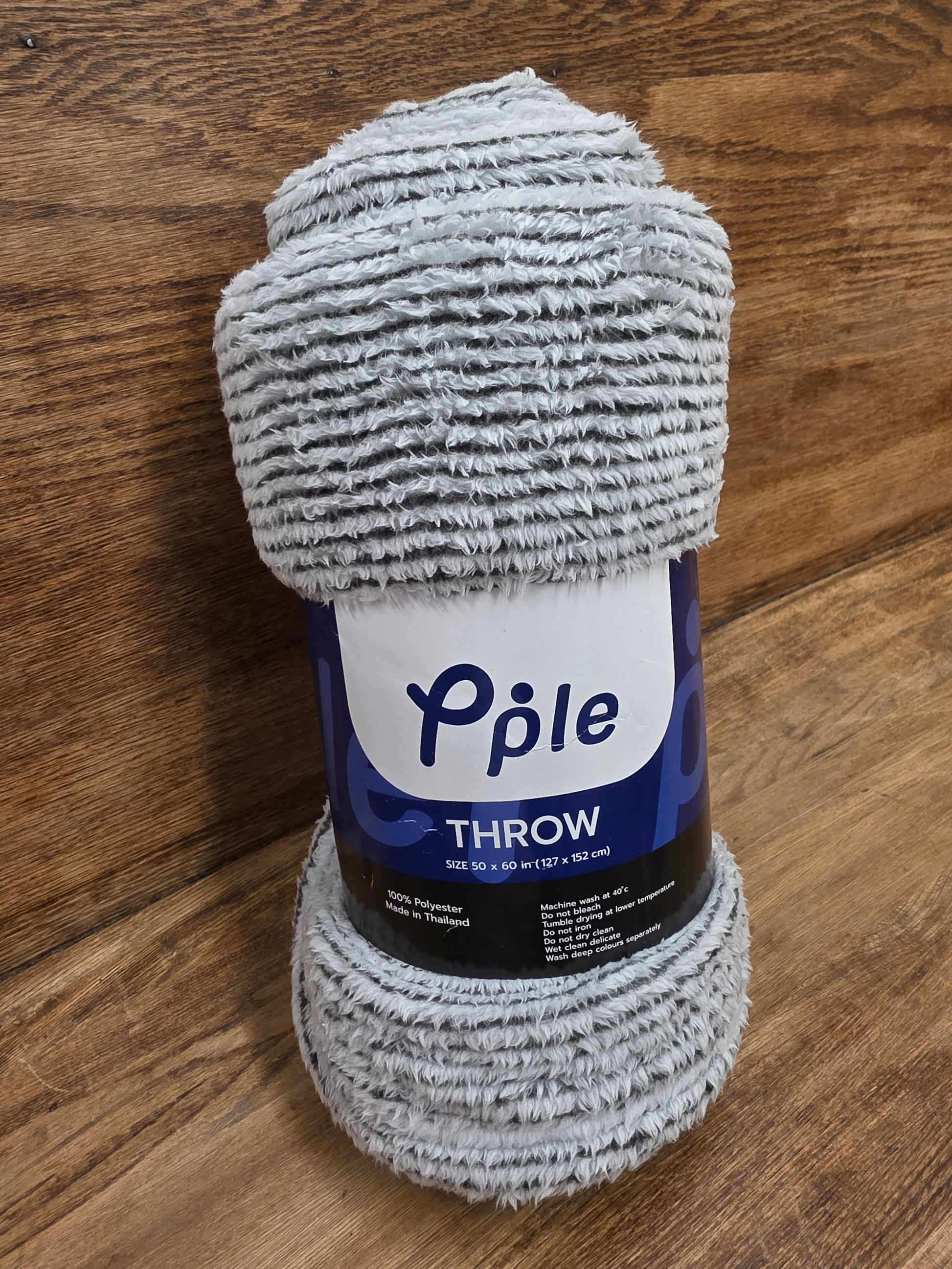 This gray and white striped 50X60 inch throw blanket is as soft as a cloud! The light weight blanket is a great addition to every home.