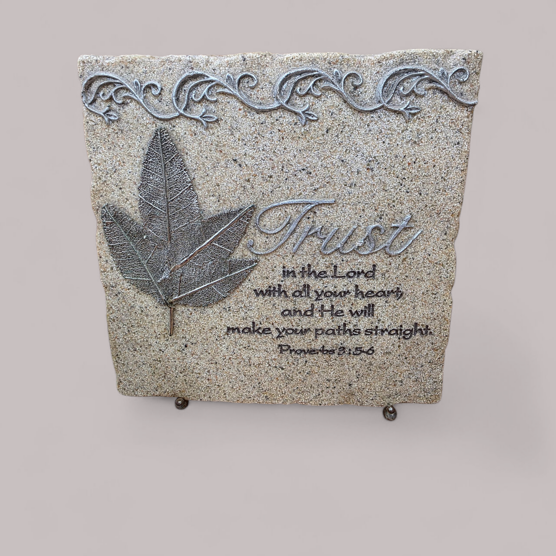 Trust in the Lord; what a great reminder. This stone plaque has classic beauty.