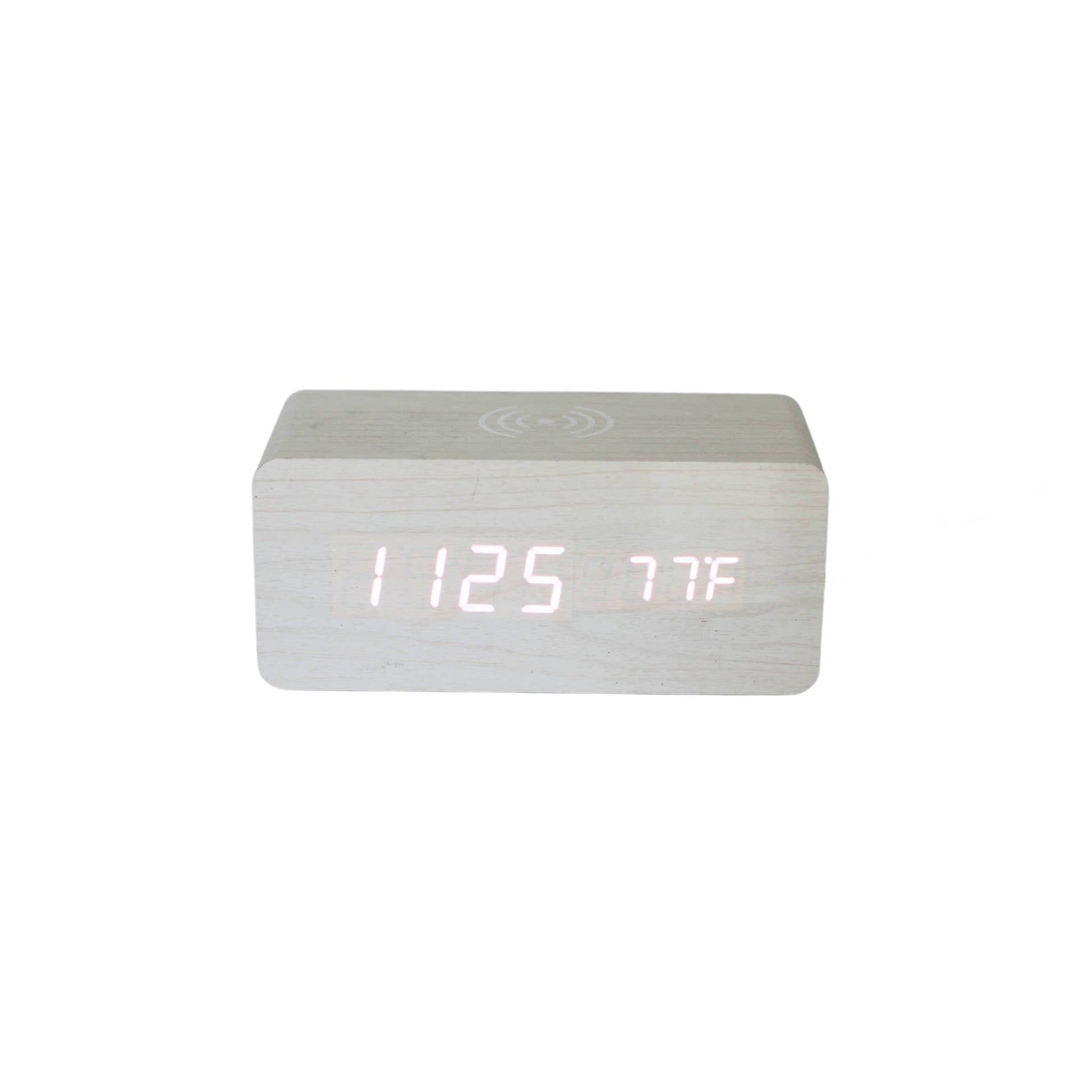 White Wood Wireless Phone Charger/Digital Clock